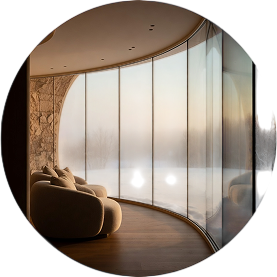 Для тех, кто хочет создать эффект простора и наполнить дом естественным светом, идеально подойдут панорамные окна или безрамные конструкции. Становятся центральным элементом дизайна и подходят для остекления домов с современным архитектурным стилем.
